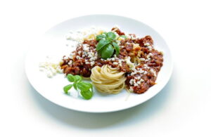 Primeros: Arroz con marisco. Espaguetis a la boloñesa. Menestra de verduras con jamón. Ensalada de